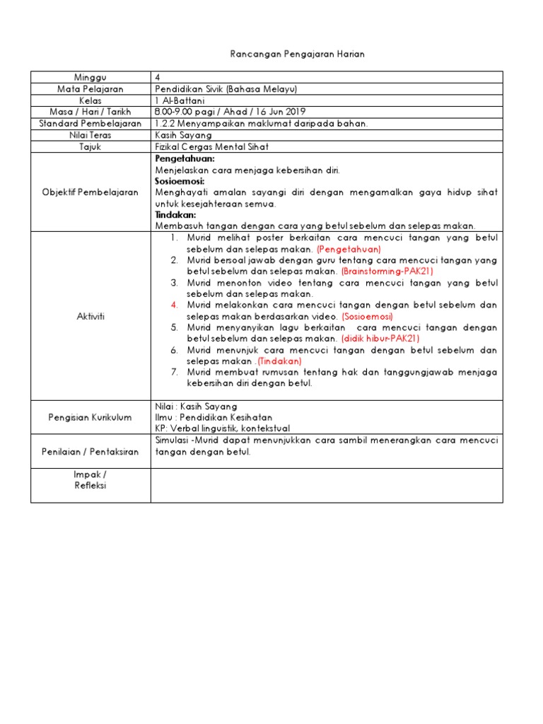 Rancangan Pengajaran Harian Pendidikan Sivik Dalam Bahasa Melayu Tahun 6 Jun 2019 Pdf